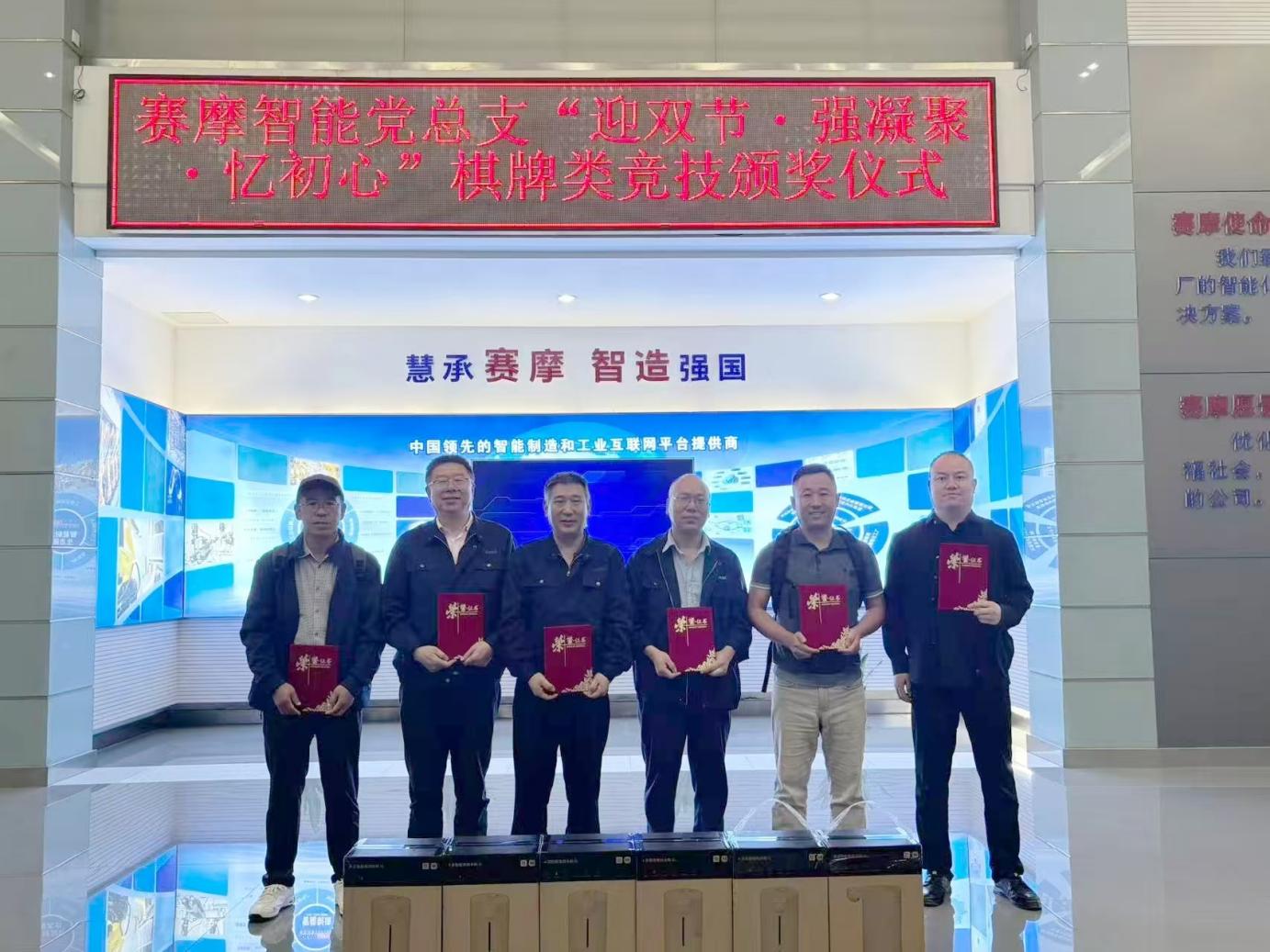 最终,在10月11日下午的决赛中,来自赛摩智能徐州公司的张家国、宋汉东荣获一等奖,赛摩智能徐州公司的王金林、刘明刚,赛摩智能南京公司的赵庆强、张先培荣获二等奖,赛摩智能徐州公司的王公志、卢桥、唐朝栋、张延球,赛摩智能合肥公司的王亚伟、赛摩智能浙江公司的张森荣获三等奖。赛摩智能集团党总支委员、副总经理李兵为获奖选手颁发了荣誉证书和奖品,大家手持奖品合影留念,定格下这场充满欢声笑语的竞技时光。